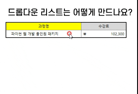 이럴때는 위 예제를 기준으로 과정명을 관리하는 관리표를 만들어 리스트를 불러올 수가 있습니다.