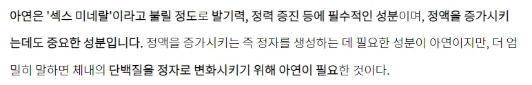 아연은 섹스 미네랄이라고 불릴 정도로 정액 양을 증가시키는데 중요한 성분인데요.