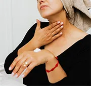 목 주위의 근육을 마사지하면 피부의 혈류가 촉진되어 콜라겐 생성을 돕습니다.