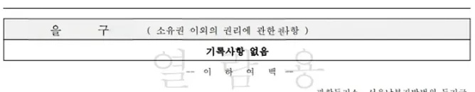 부동산 거래 시 가장 좋은 [을구]는 기록사항 없음이 가장 좋다고 볼 수 있습니다.
