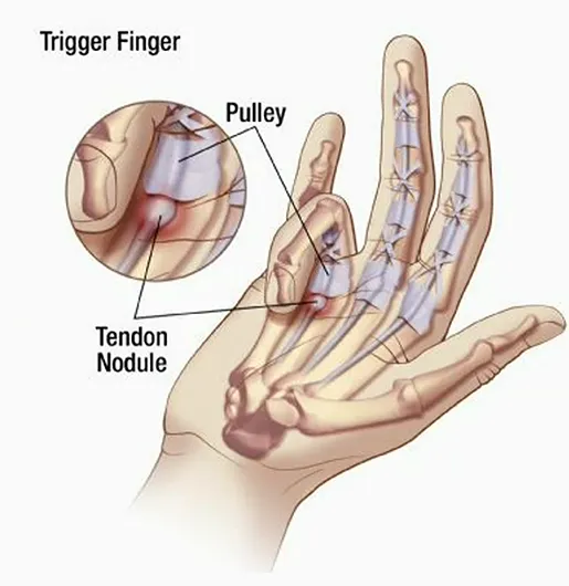 방아쇠 손가락은 손가락으로 가는 힘줄이나 힘줄이 지나가는 피막에 염증이 생겨서 발생합니다