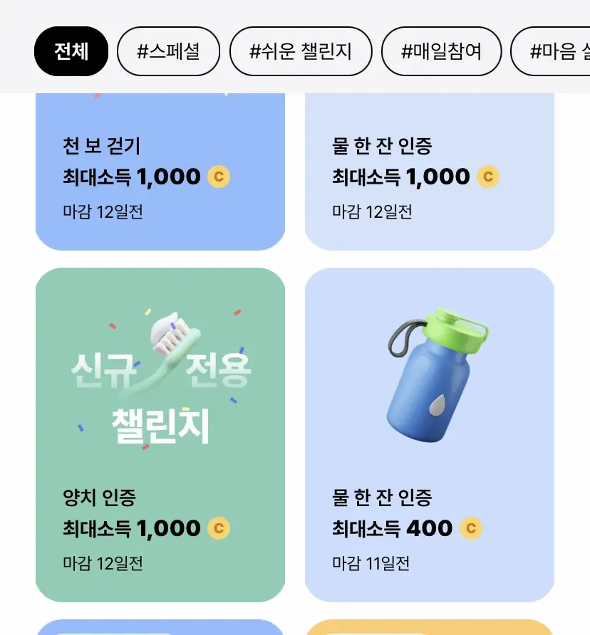 - 난이도가 낮은 챌린지 참여하여 달성하면 포인트 획득