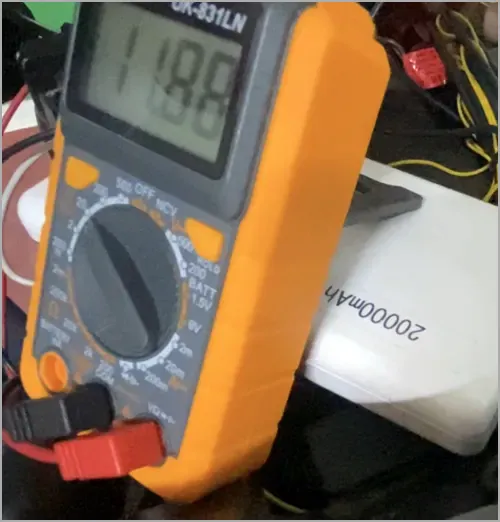 - 멀티미터기를 사용해 배터리의 전압을 측정합니다.