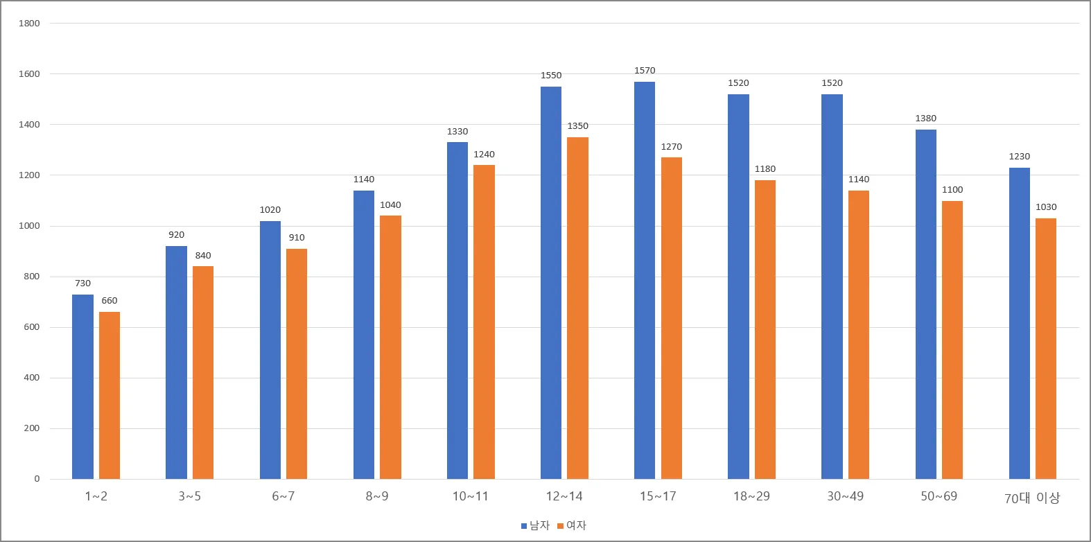 - 12세~14세 : 2,600kcal
