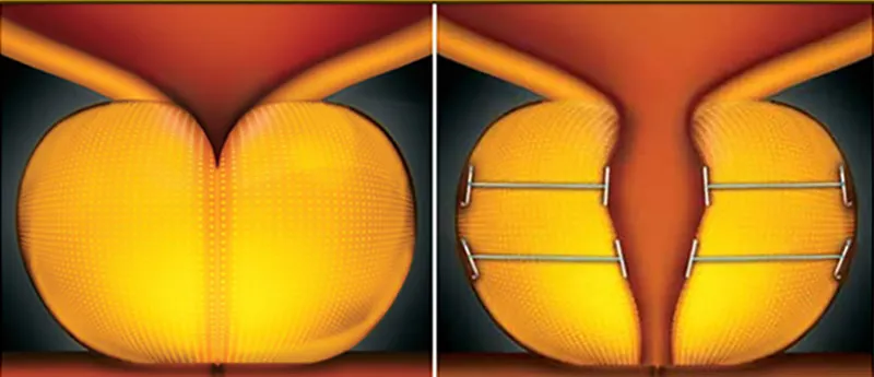 ● 유로리프트는 비수술적 방법으로 사정 기능을 유지하면서 전립선을 좌우로 고정해 요도를 확장합니다.