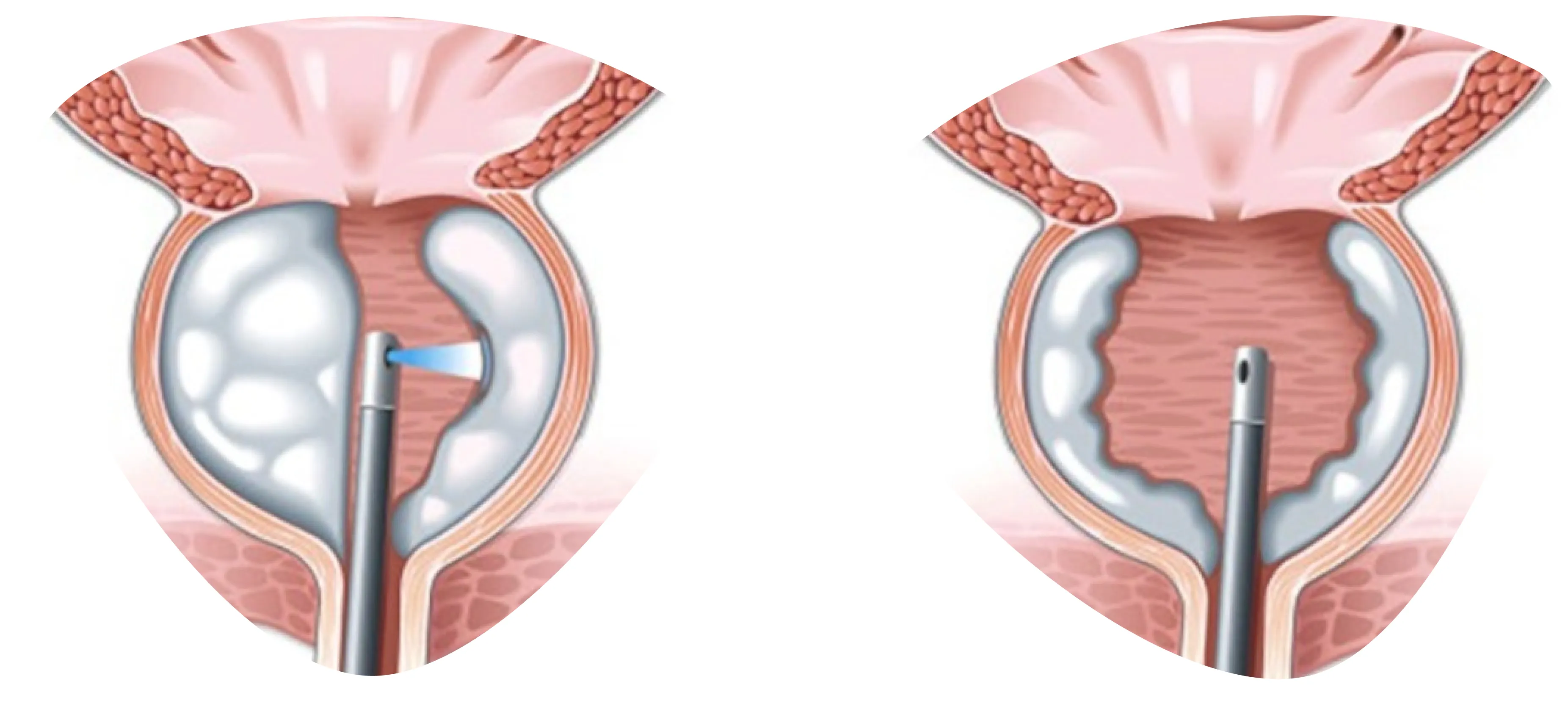 홀렙은 특수 홀뮴 레이저를 사용하여 전립선 껍질과 비대된 전립선 조직 사이를 분리하고, 전립선 조직을 통째로 제거하는 방법입니다.