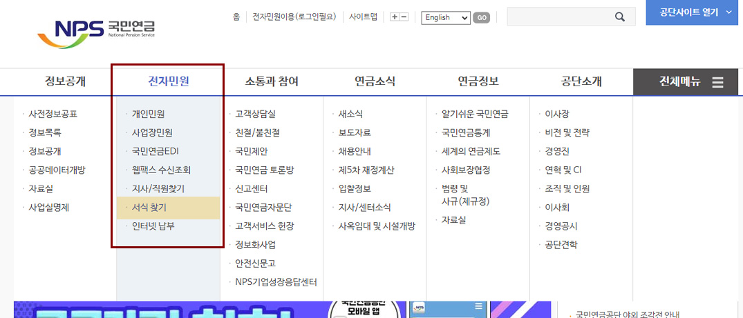 국민연금 납부예외 신청을 하기 위해서 신청서를 찾으려고 하신다면, 국민연금 공단 홈페이지에 아래의 순서대로 클릭하신 후 다운로드하시면 된답니다.