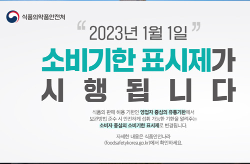 ● 2023년 1월 1일 부터 식품에 유통기한이 아닌 소비기한으로 표시