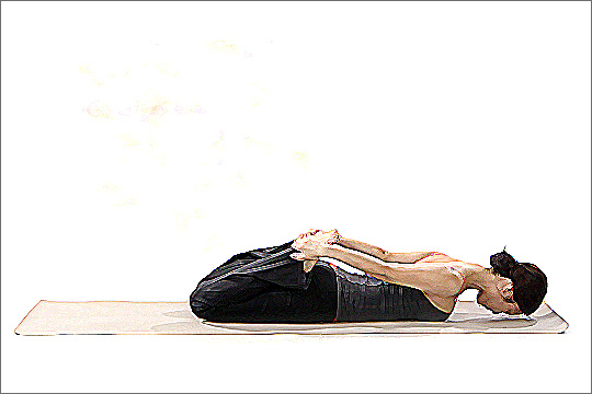 되도록 이 자세를 할때에는 허벅지 앞부분과 가슴이 바닥에서 들려질 만큼 몸을 일으키고, 고개 역시 들어 올려야 합니다.