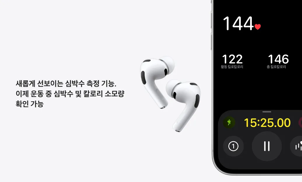 에어팟 프로3에서 가장 눈에 띄는 변화는 바로 심박수 측정 기능입니다. 이어폰 자체에 센서를 탑재하여 사용자의 심박수를 측정하고, 칼로리 소모량까지 추정할 수 있게 되었죠.