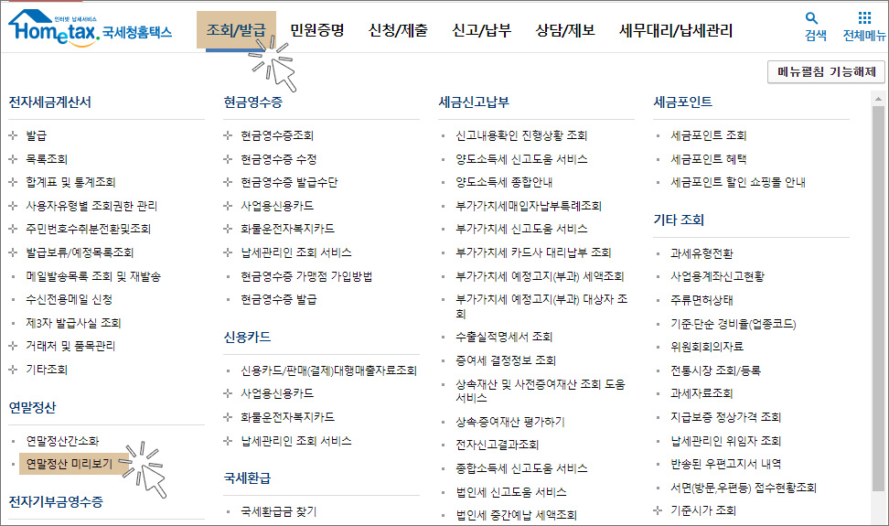 1. 홈택스 홈페이지에 방문 후 아래와 같이 연말정산 미리보기 페이지로 이동